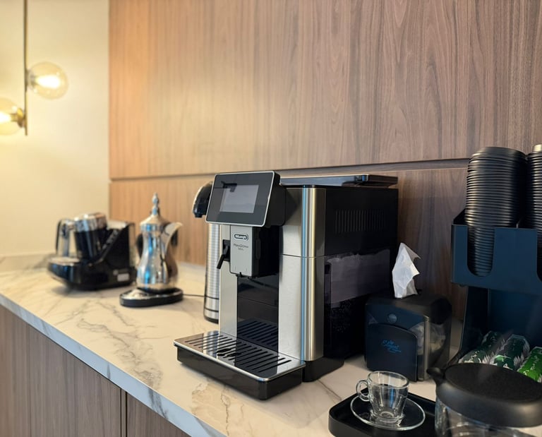 An artisan selection of hot and cold beverages and premium snacks. A curated hospitality experience to keep you energized.